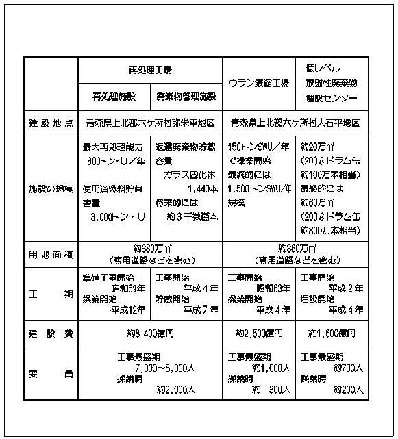 原子燃料サイクル三施設の概要